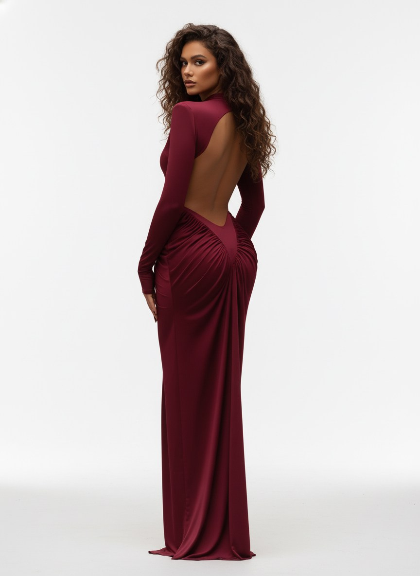 Платье, бордовое в пол M-XL